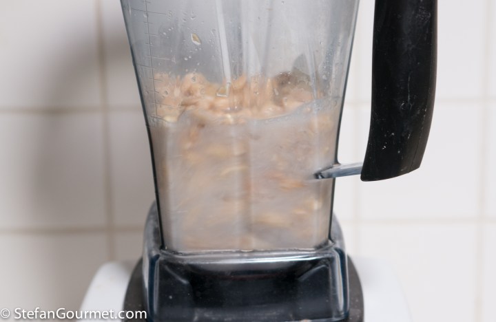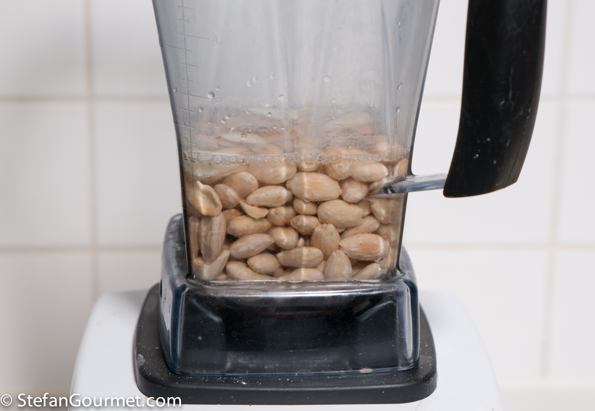 Put the almonds in a powerful blender (I used a Vitamix) and cover them with cold water.