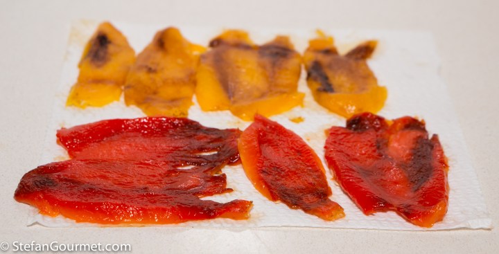 Meanwhile, the peppers should have cooled enough that you can peel them.