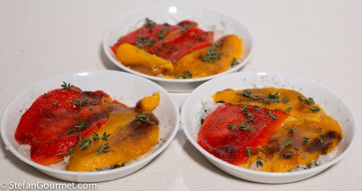 Good food does not need to be complicated, does it ! Main meal for me even tho’ I would not and could not be a vegetarian if my life depended on it ! Don’t know whether Dutch stores present as same but I usually buy my capsicums in a ‘tube’ of one red, one yellow and one green . . . quite handy if one wants to mix and match !!!!