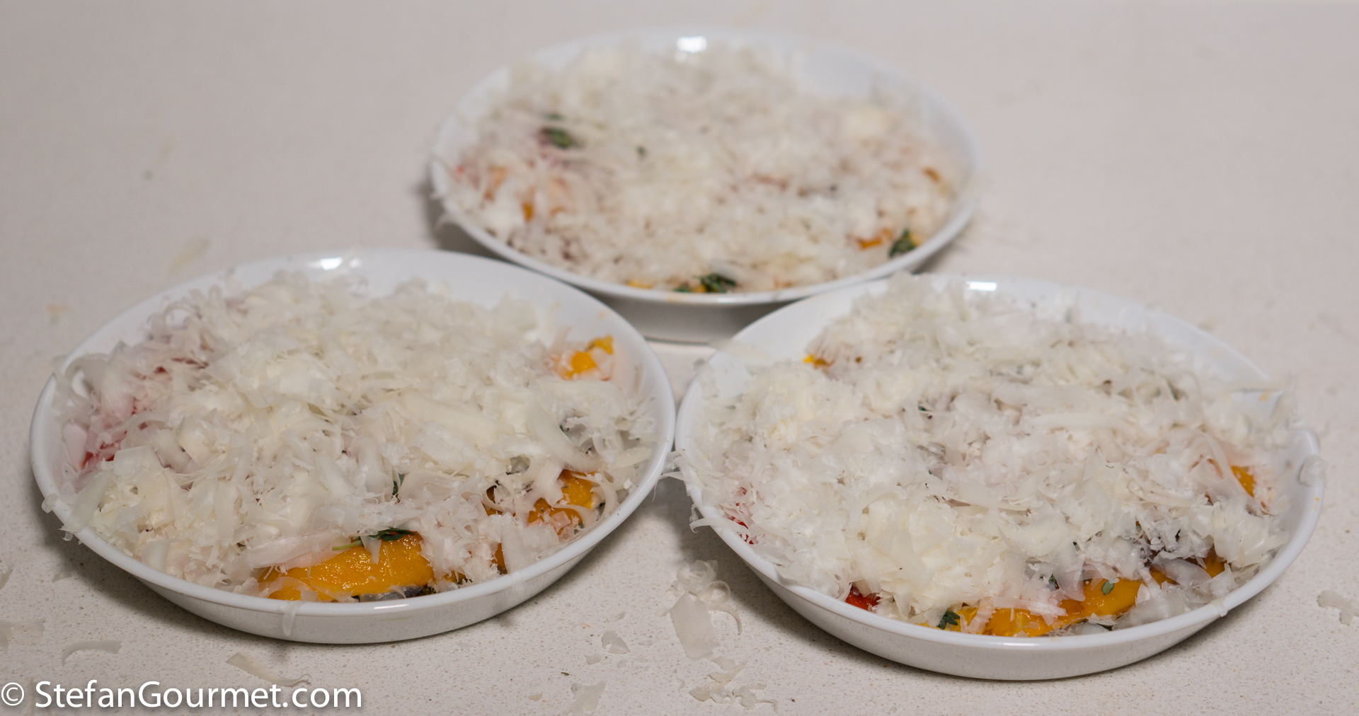 A very fine looking mix of good veggies and cheese. I’ll look forward to trying this. I’ll be using grated Manchego, as that’s what’s in the fridge. A bit of Italian Spanish fusion. Great straight up recipe, I like that.
