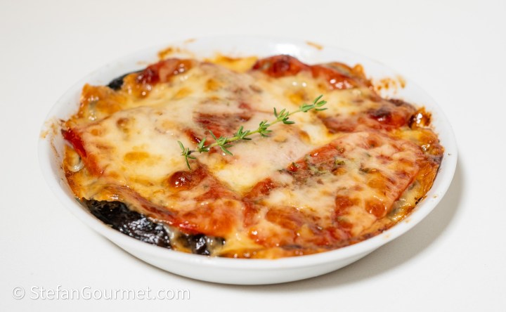 This dish was inspired by something we had in a restaurant in Corsica last year: roasted eggplant, zucchini, and bell peppers, that are subsequently baked with a generous amount of cheese. The Sardinian pecorino I used for my own rendition was a bit too dry so it did not melt properly, but it tasted great all the same. The vegetables take a lot longer to cook (especially the eggplant; with peppers and zucchini it is not such an issue if they are still a bit raw, but raw eggplant is like banana peel) than the cheese to melt, that is why the vegetables need to be roasted before adding the cheese. The result is very tasty and can be served as an appetizer, side dish, for lunch, or as a vegetarian main course.
