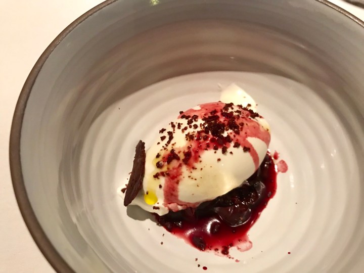 For dessert: olive oil ice cream with amarena cherries and a wine reduction. Nice but nothing special. 7/10