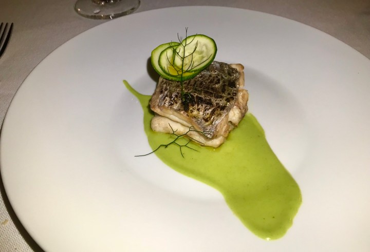 Beltfish with cream of zucchini and mint. The fish was nice and moist. It could have handled a bit more than the small amount of zucchini cream.
