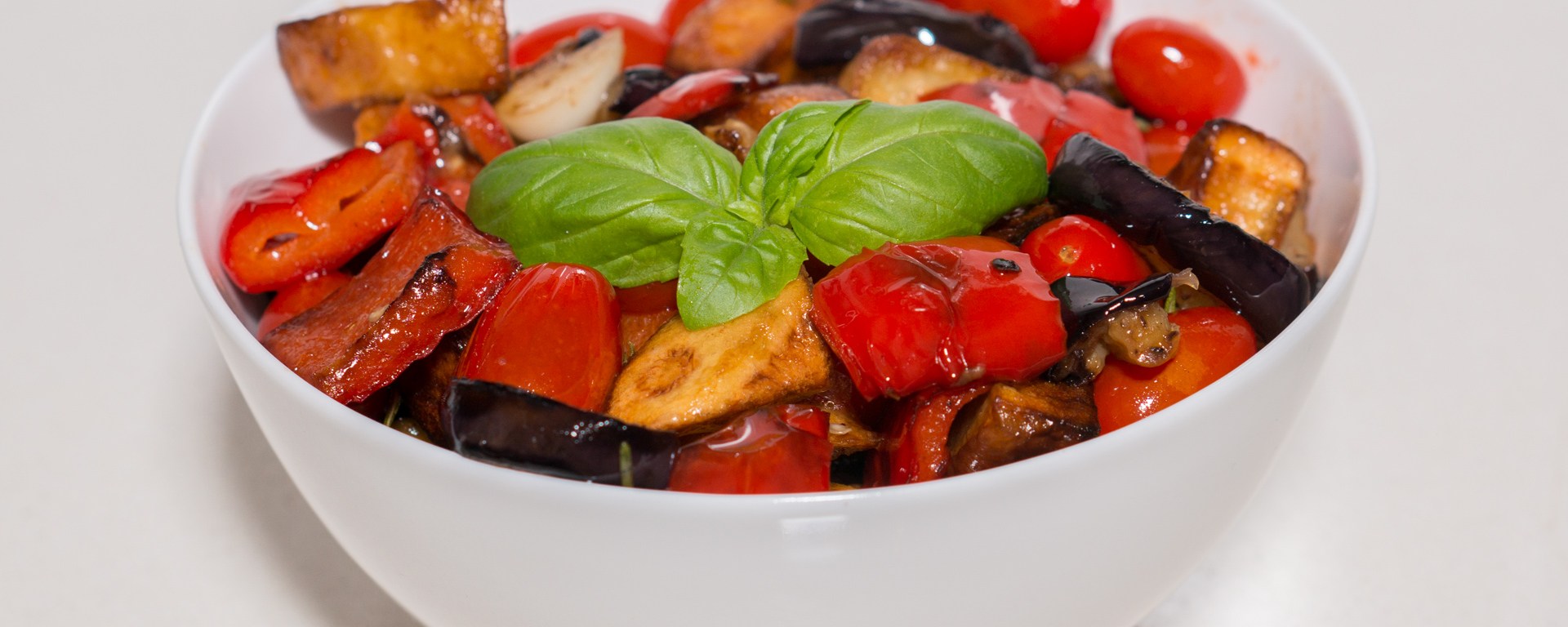 Cilento is an area in the south of Campania, and when I was there I enjoyed a dish called Ciambotta alla Cilentana. There are many versions of ciambotta, but here it is potatoes, eggplant, bell peppers, and tomatoes. It reminded me a lot of the French ratatouille (which usually does not have potatoes and would include zucchini), and ratatouille is usually cooked to a softer consistency.
