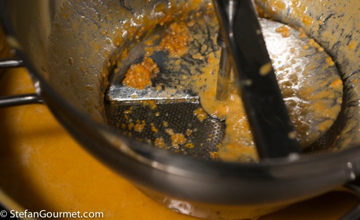 …and then through the fine one, to remove all of the seeds and pieces of skin.