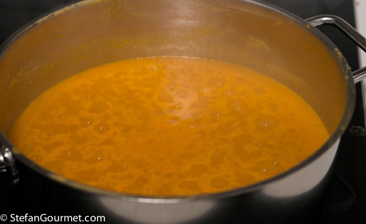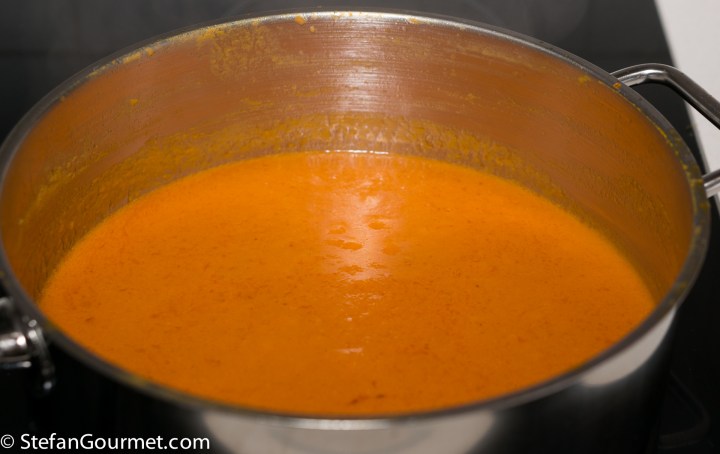 Reduce to a simmer and simmer until the sauce is no longer watery. Taste and adjust the seasoning with salt and freshly ground white pepper.
