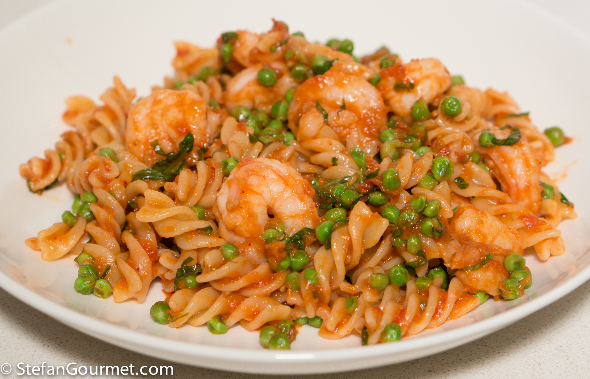 A very appropriate flashback for today’s post, as two years ago I also posted something that I whipped up when I came home from work. In this case pasta with shrimp, tomatoes, and peas.