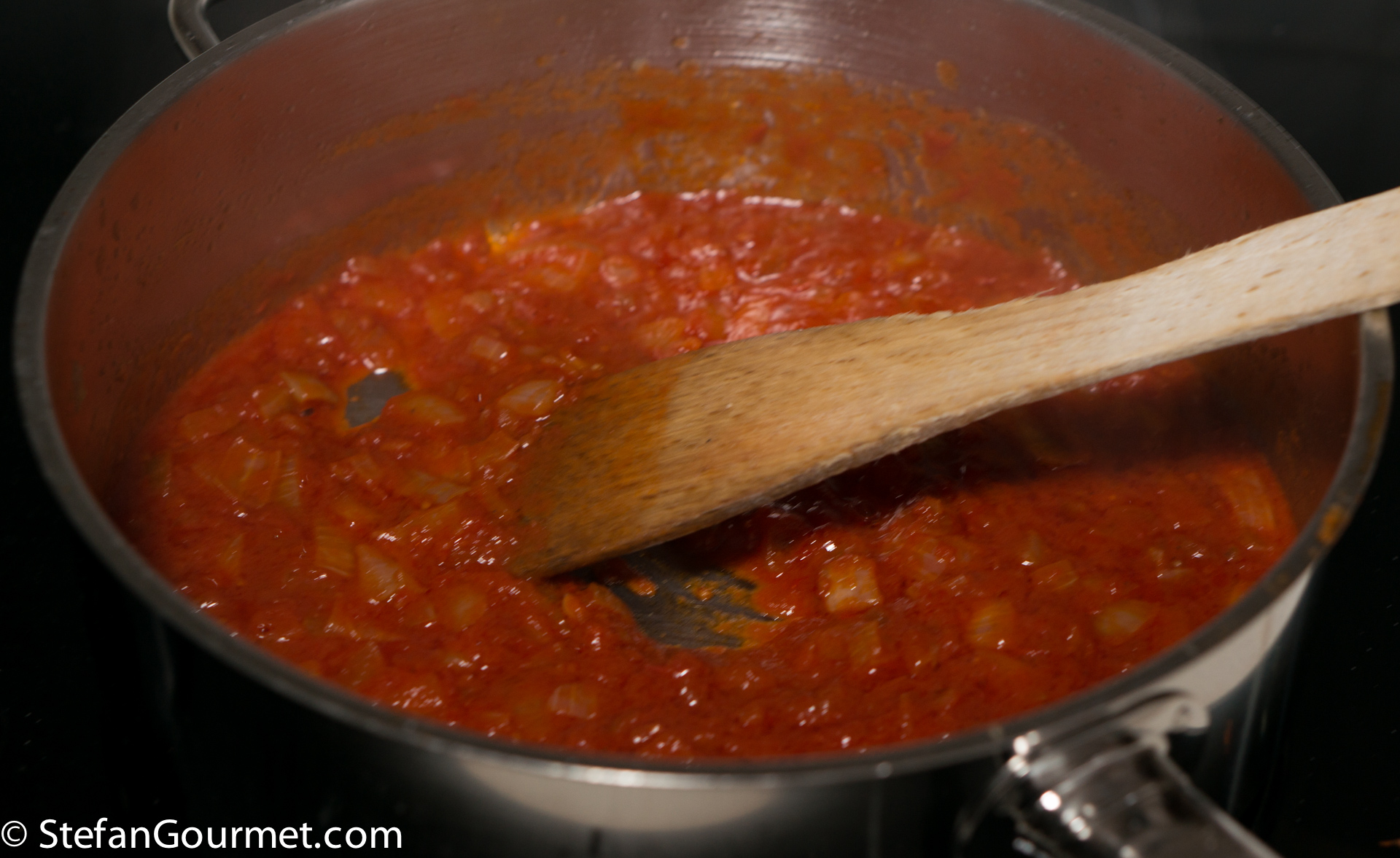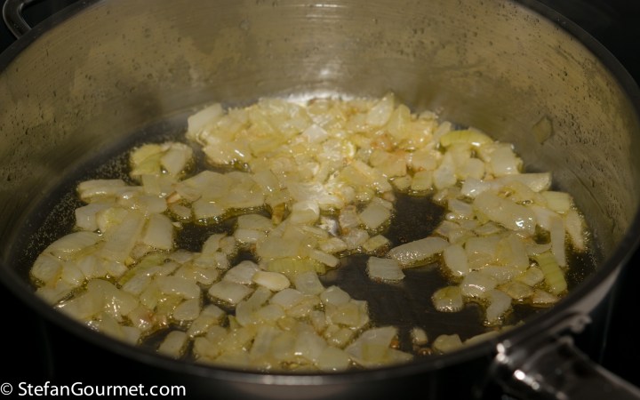 7:26pm The onion should be slightly golden by now (did you remember to stir it regularly?).