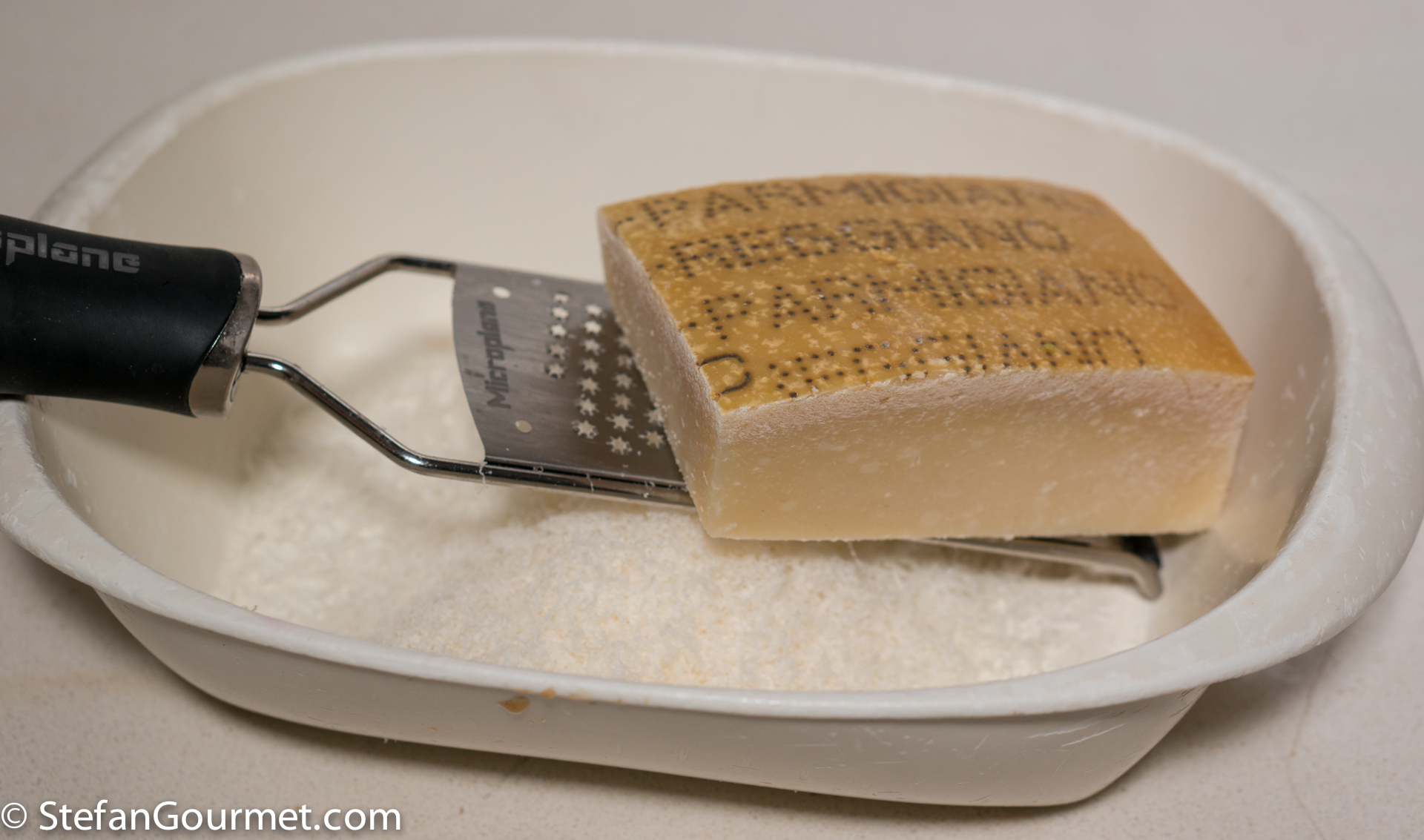 30 grams (1 oz) freshly grated parmigiano reggiano (not shown in the photo)