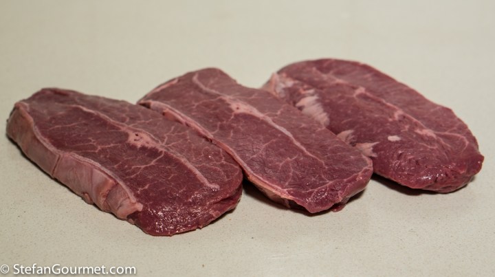 The “scotch fillet” I saw in Australia was ribeye, a different cut from this one. Indeed cheaper than tenderloin, but more expensive than blade steak. According to Wikipedia, this cut is called “oyster blade steak” in Australia.