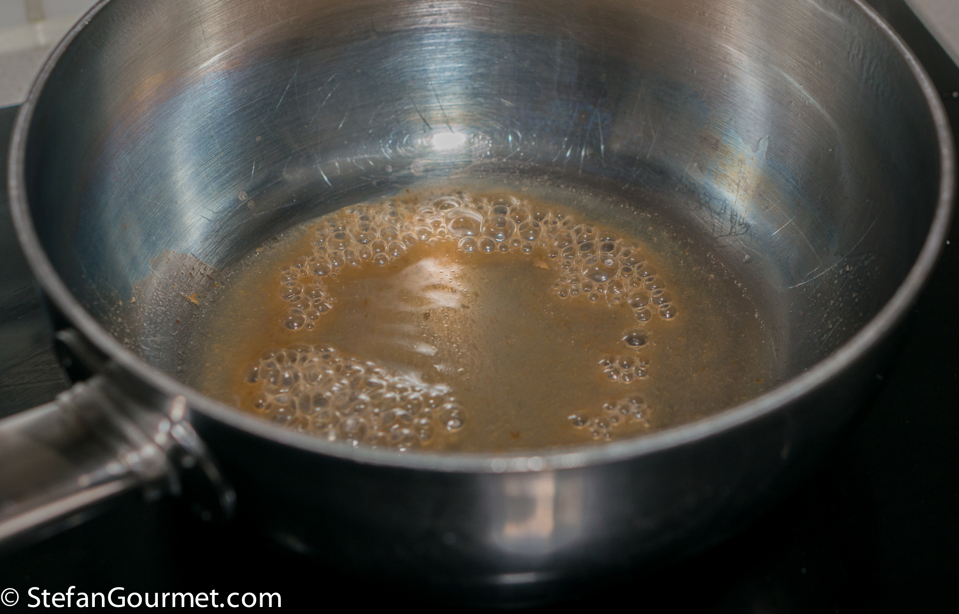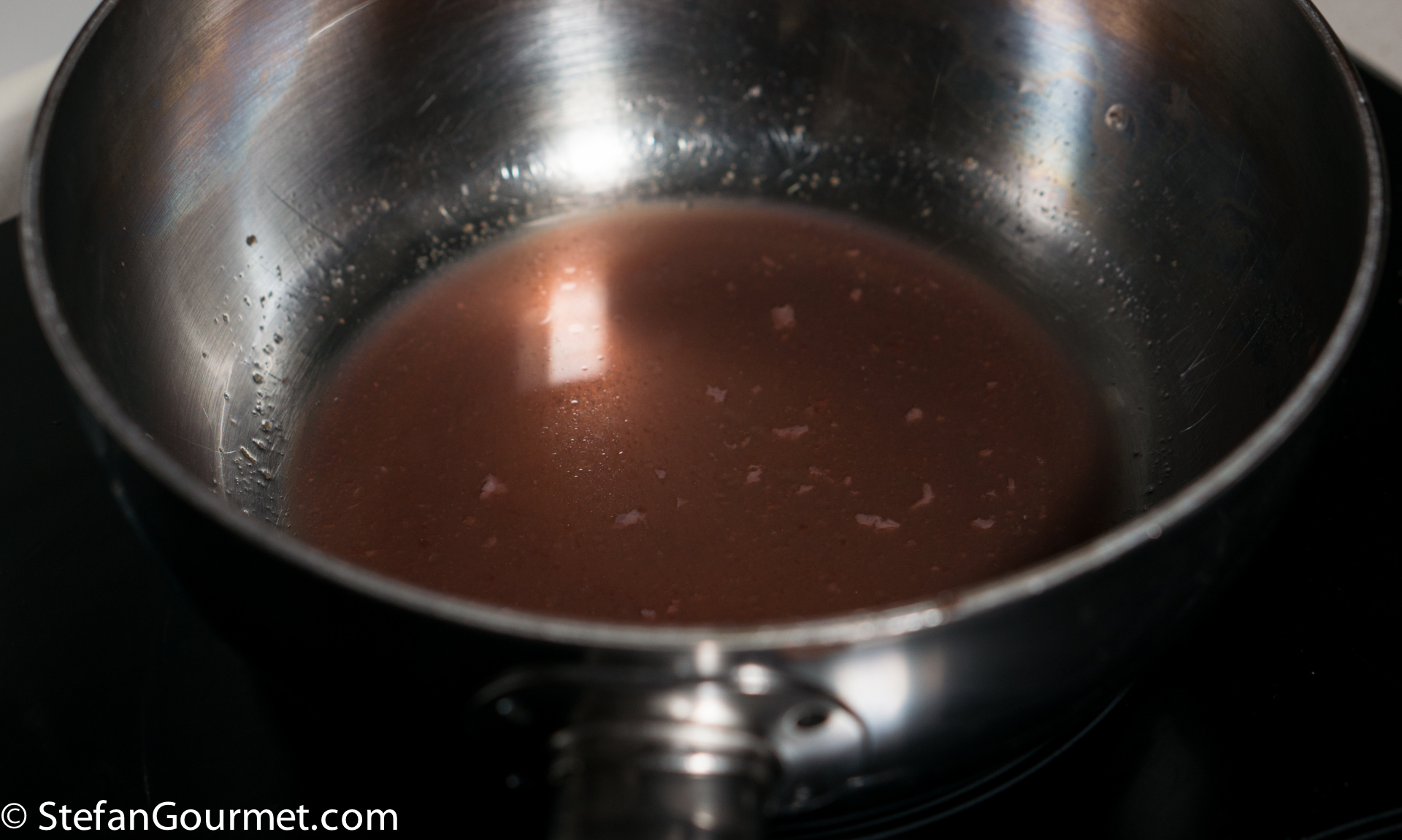 - Mix in a slurry of cold water and cornstarch (or another starch-based thickening agent) before bringing to a boil. This will lead to a flavorful sauce, but the color is not so nice.