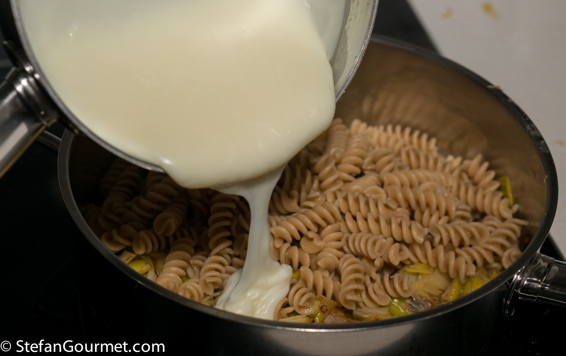 I am ‘potty’ about leeks – the first ‘green stuff’ always on my food order! And this indeed appeals: well, don’t oft make béchamel these days but will on occasion . . . and there definitely will be extra mozzarella, the use of which commits far fewer ‘food sins’ 🙂 ! Use fusilli often – yes, whole wheat !!