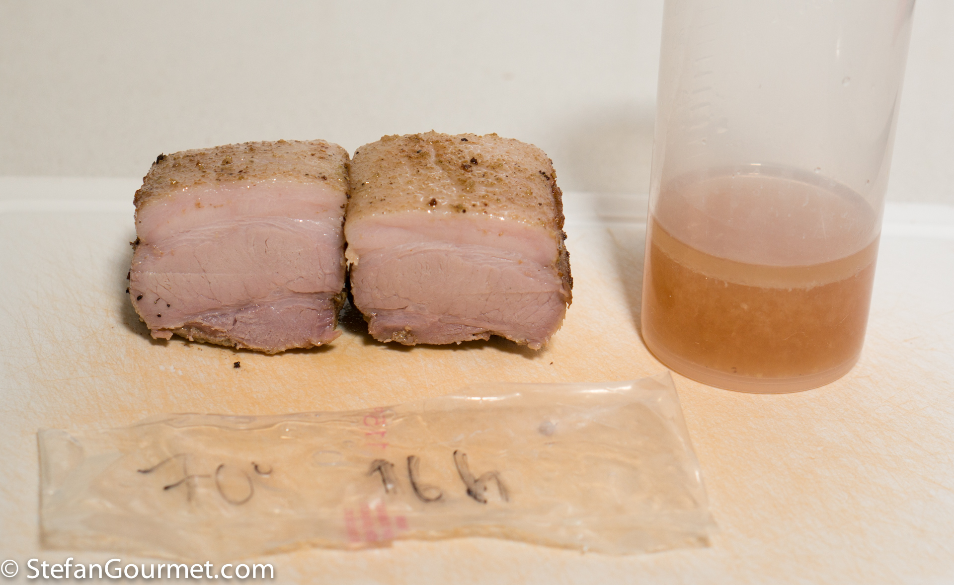 Very interesting thanks for the post – I have a piece on at the moment at 74c. When I got up this morning a small corner of the pork was just out of the water. No break in the bag just a small amount of juice. I re-bagged it and put it back in with 11 hours cook time to go. Do you feel it will be safe to eat?