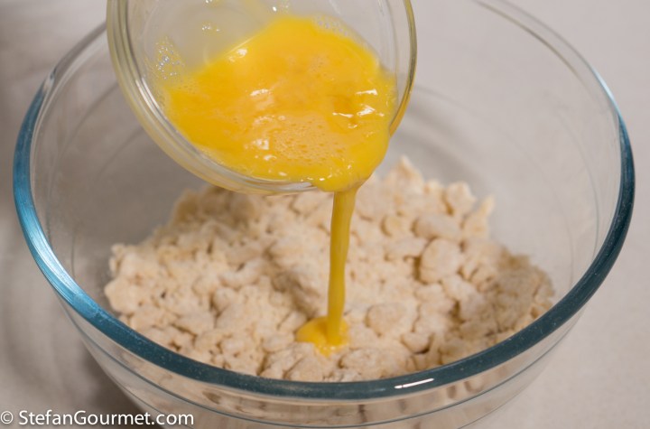 Transfer the dough to a large bowl, and add most of the beaten egg.