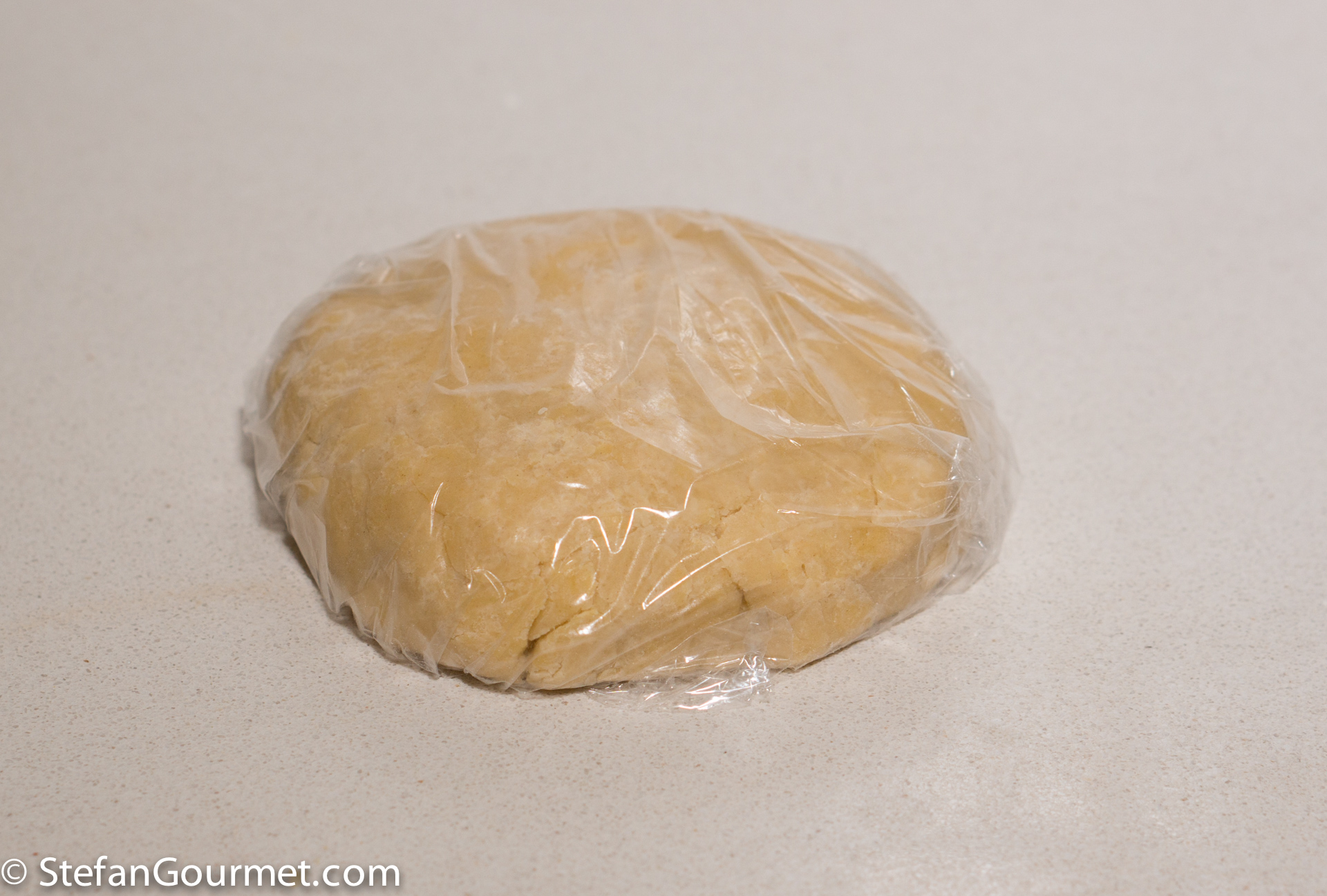 Once the dough has come together, shape it into a thick disc and wrap it with cling film. Allow the dough to rest in the refrigerator for half an hour.