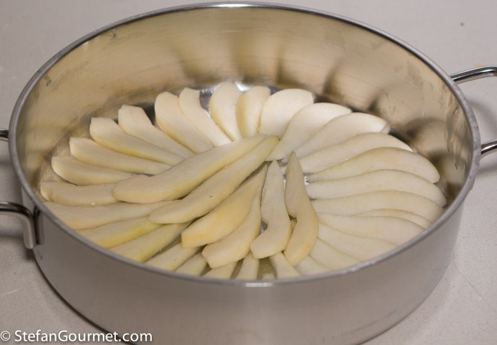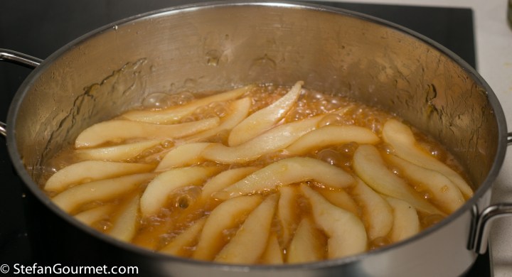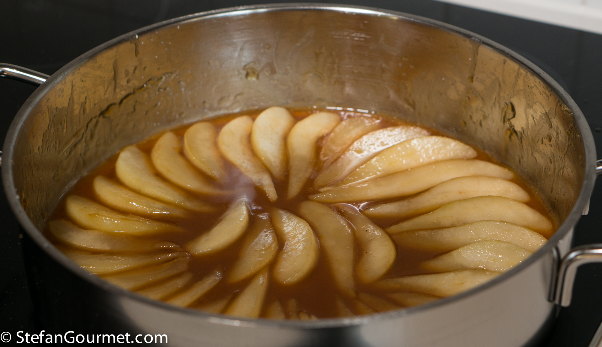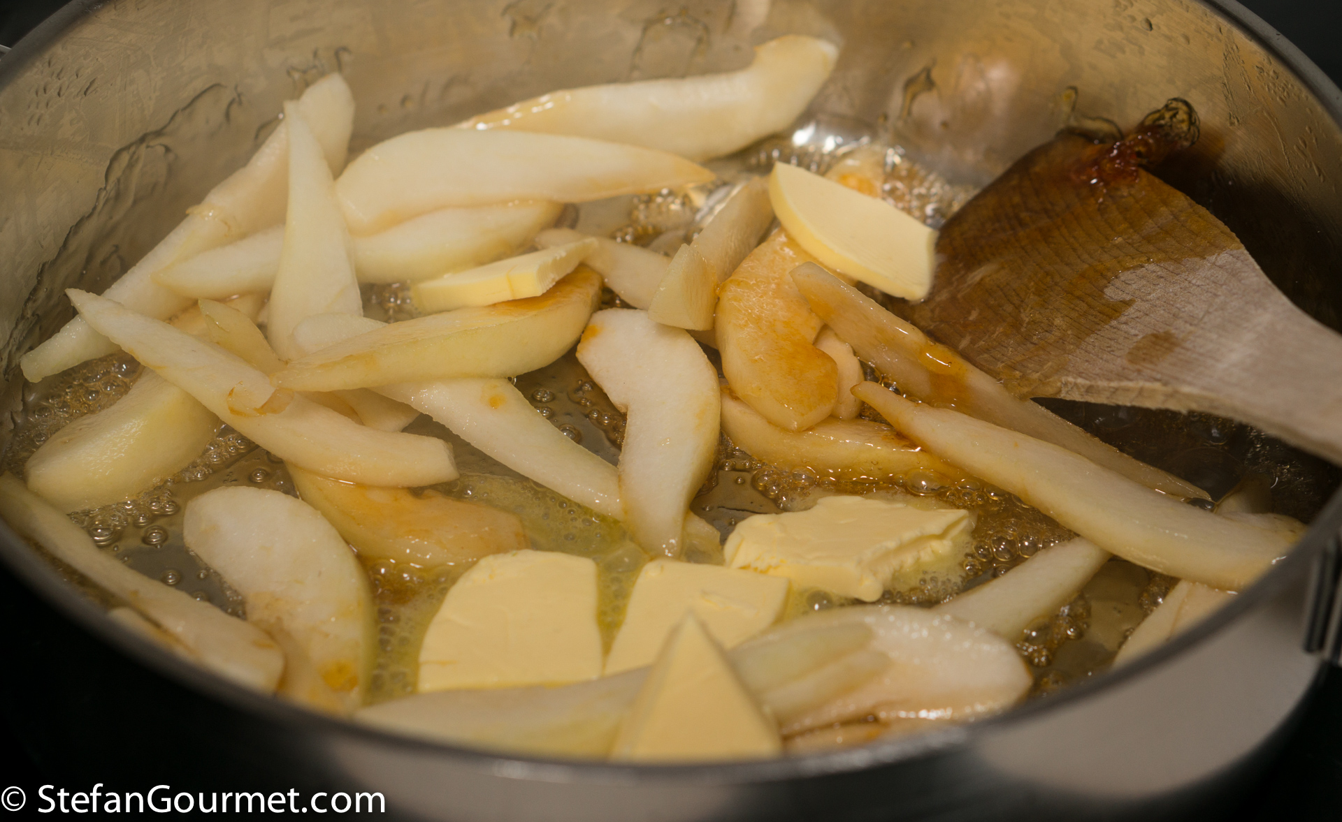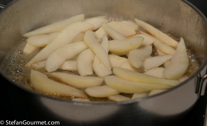 As soon as the caramel is brown, add the pears. Stir briefly, and them…