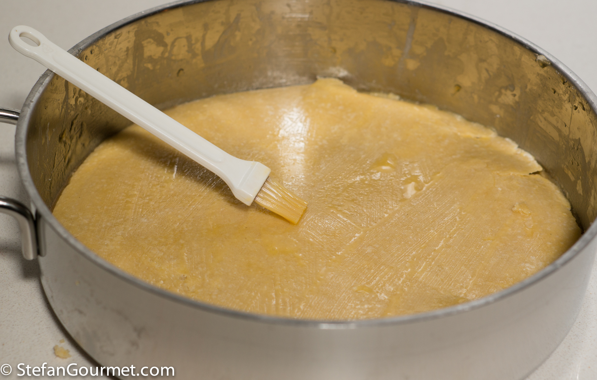 Save a bit of egg for brushing the crust later. Cover and refrigerate it.