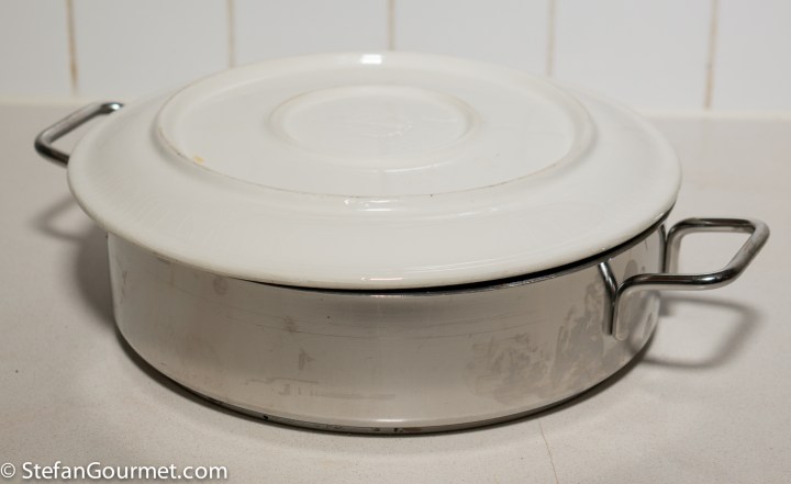 Hot caramel may leak from between the pan and the plate, so be careful.
