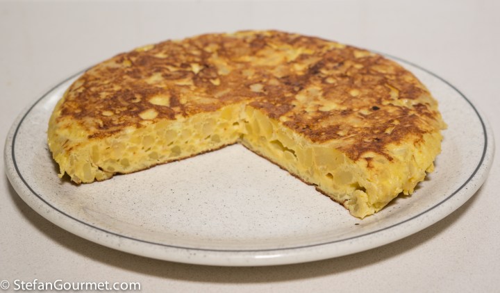 Next to paella, tortilla española or tortilla de patatas is one of the most famous national dishes of Spain. It can be found on restaurant menus, but it is also served as tapas. Patatas means potatoes, and that about sums it up: this is a type of omelette (similar to an Italian frittata) filled with potatoes.
