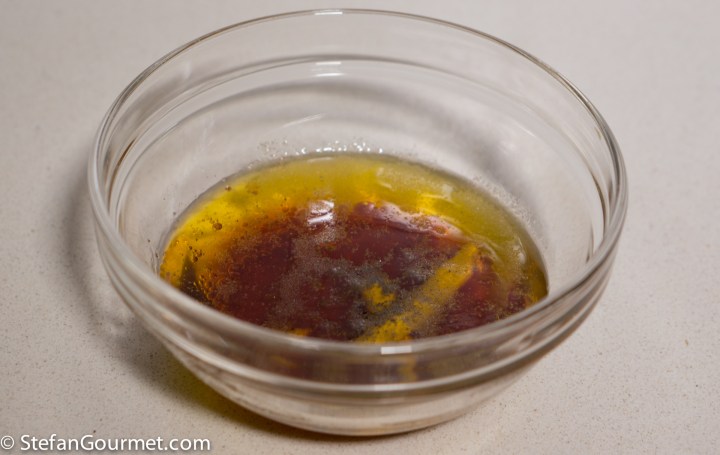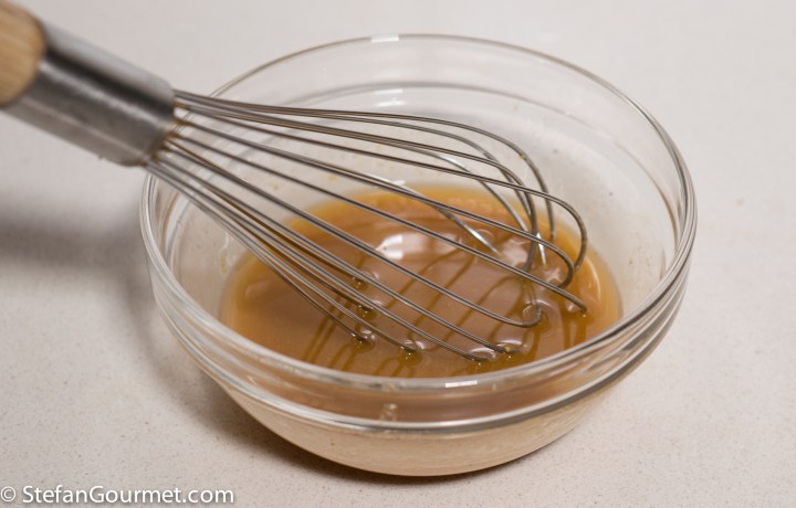 …and whisk to emulsify. You could also use a jar with a lid and simply shake it, which is great for dressing the salad later. Taste and add salt and freshly ground black pepper as needed.