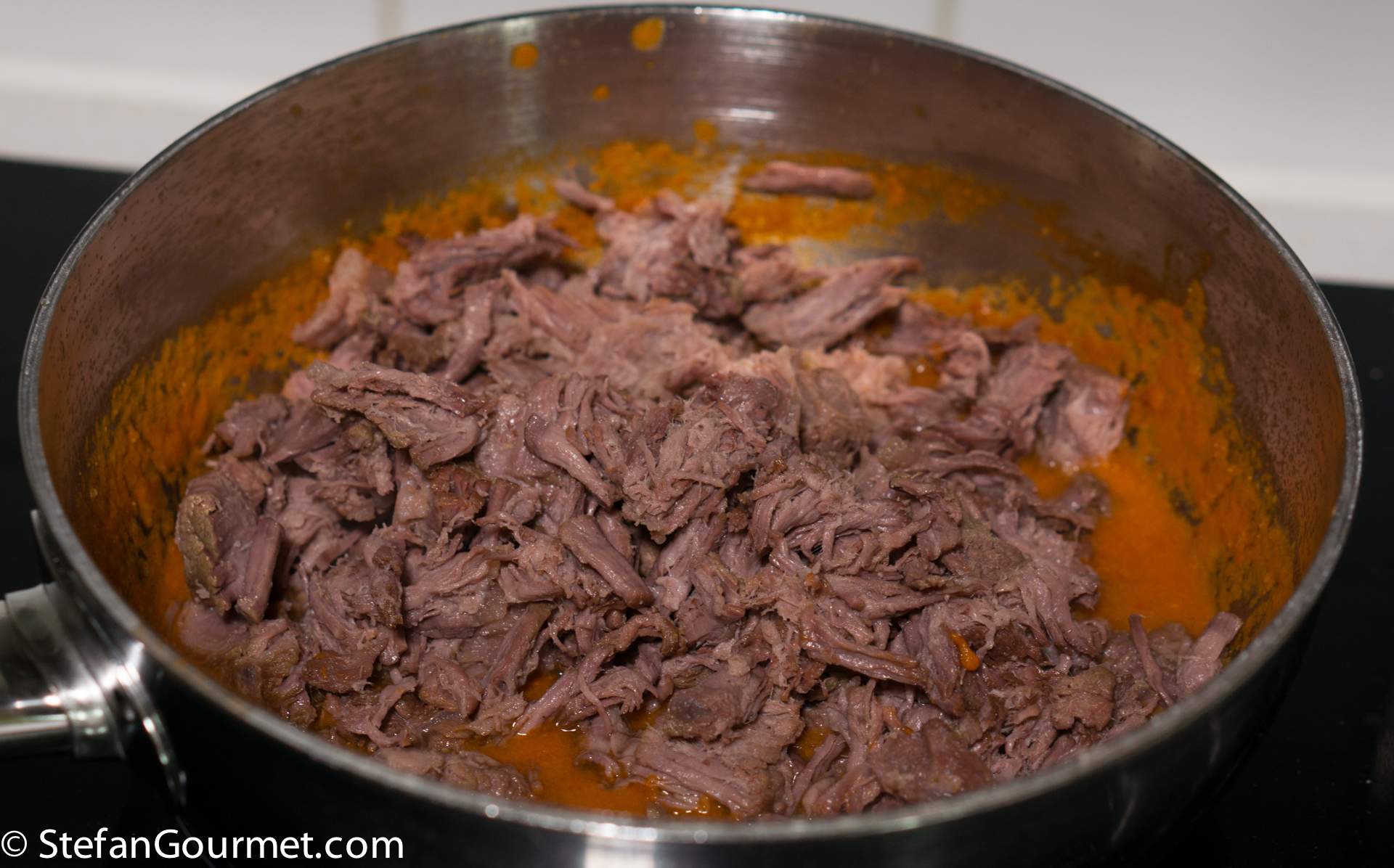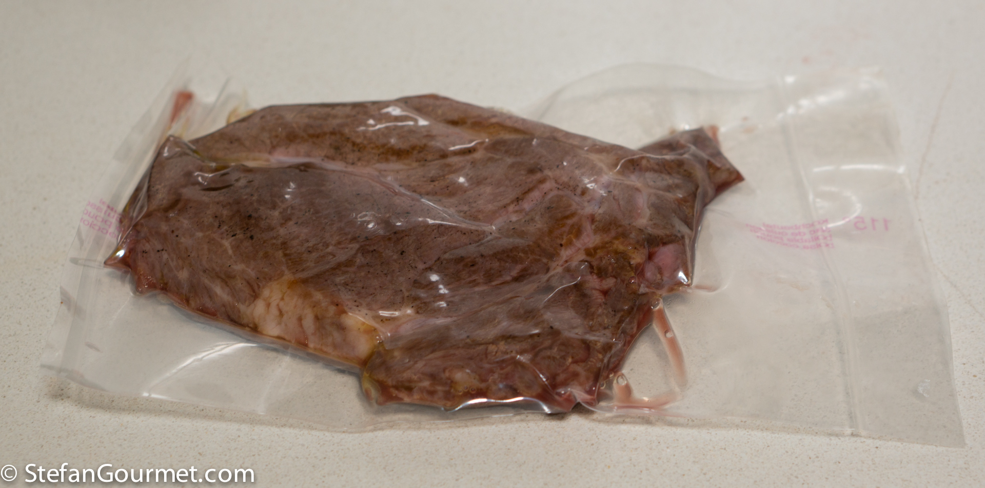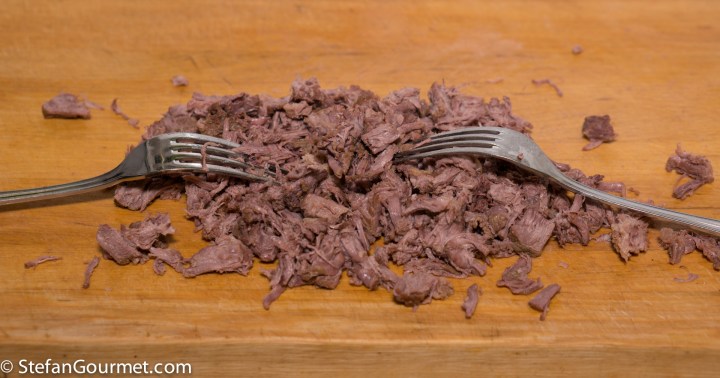 …and cook it sous-vide for 24 hours at 74C/165F. Alternatively, you could cover the beef with water and braise it on the stovetop or in the oven until it is fork tender.
