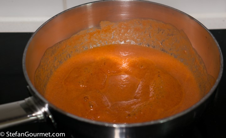 Blend until smooth and transfer that mixture to a saucepan. Bring it to a boil…
