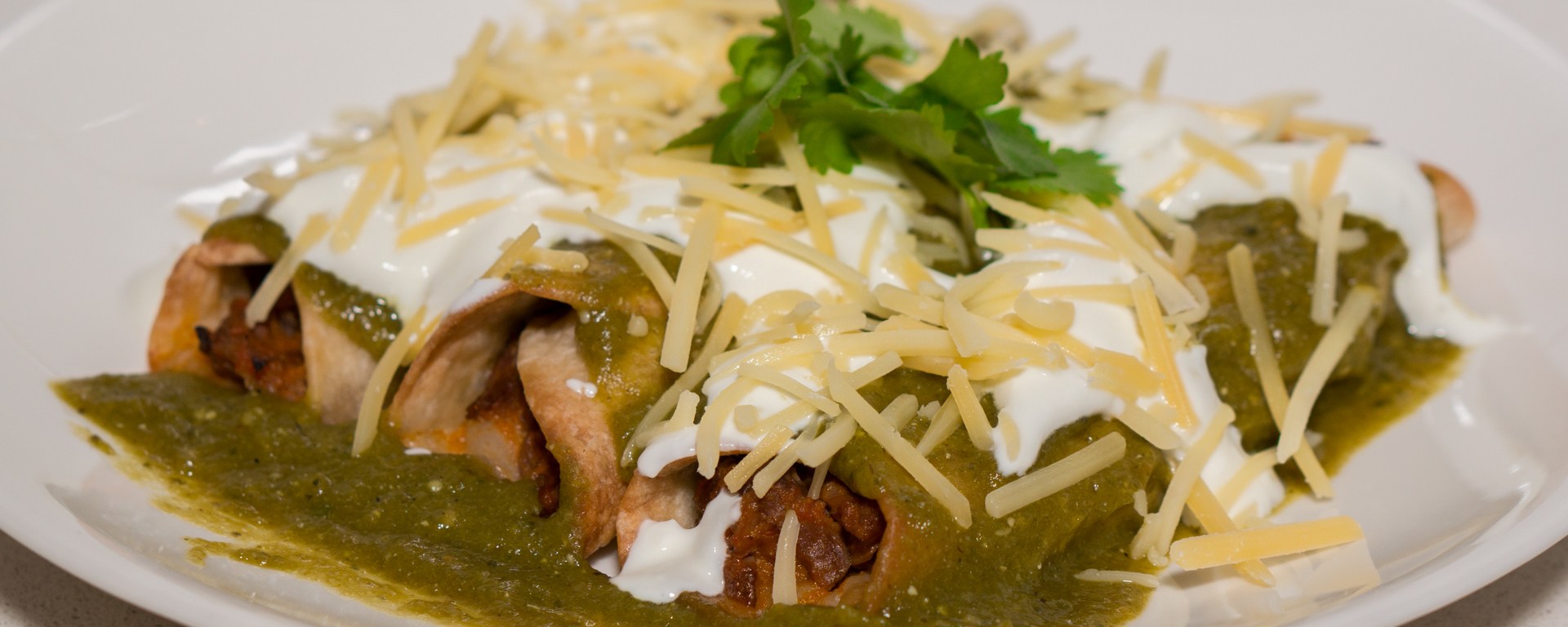 To serve, put 3 tortillas on each plate. Cover them completely with warm salsa verde. Drizzle with Mexican cream. Sprinkle with cheese, and garnish with fresh cilantro. Serve at once, as you don’t want the tortillas to get soggy.