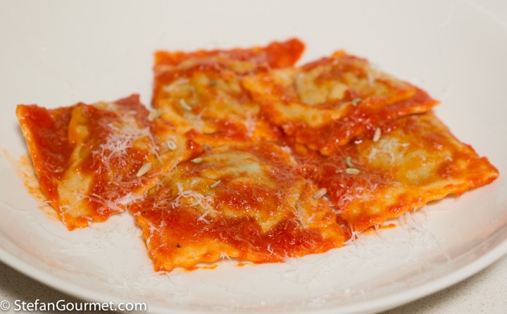 I love this idea. I guess you can use any ravioli filling as a sauce! So Now I’m thinking of an Italian sausage and pumpkin sauce… I bought leaf-shaped pasta for the fall, cause I’m one of those weirdos…