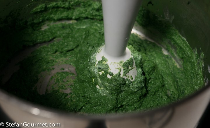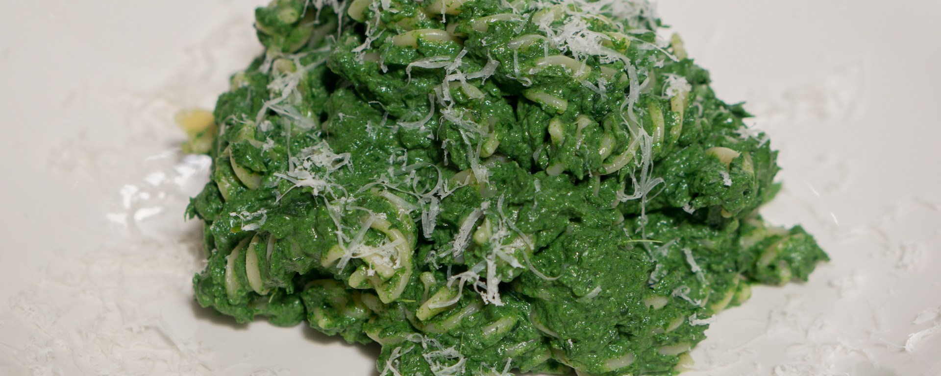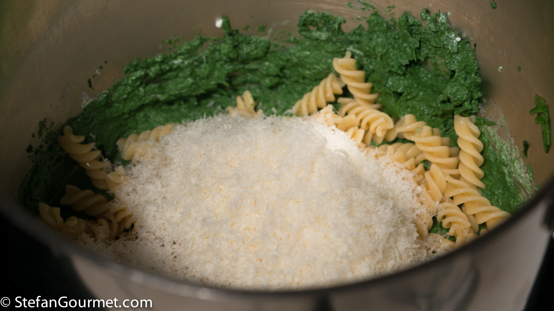 Stir over low heat until the fusilli has ‘absorbed’ the spinach.
