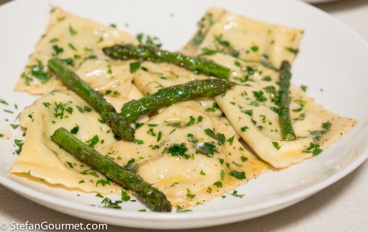 These homemade asparagus and goat cheese ravioli are worth all the work. Goat cheese and asparagus both go well with Sauvignon blanc, so it is no surprise they go together as well.