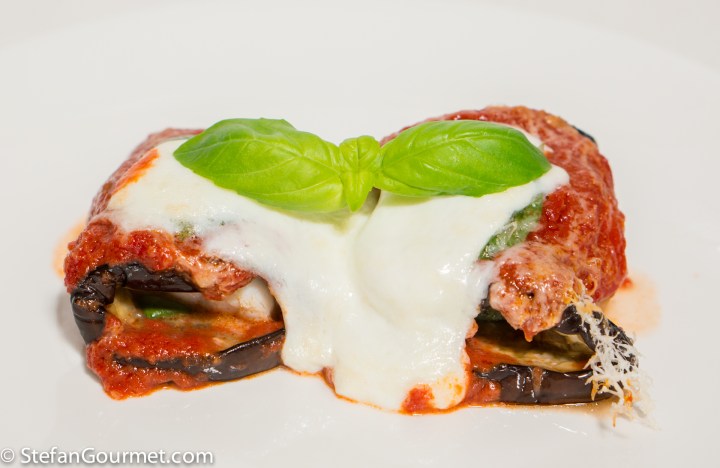You can’t see it very well in the photo, but inside that rolled up eggplant under the melted mozzarella, basil and tomato sauce is a juicy piece of monkfish. This Monkfish alla Parmigiana is a very tasty dish indeed.