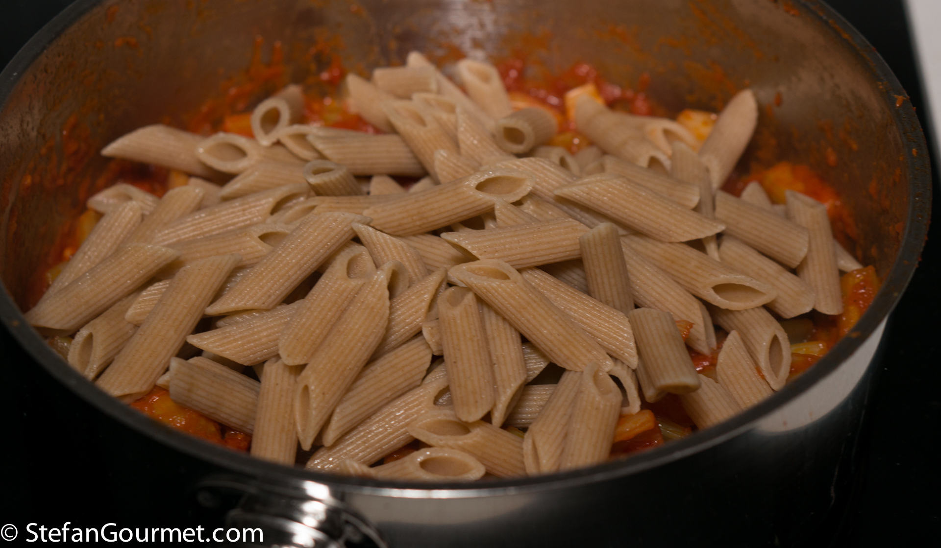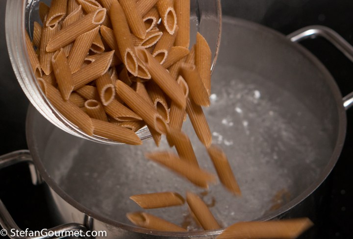 200 grams (.44 lb) short pasta, I used wholewheat penne