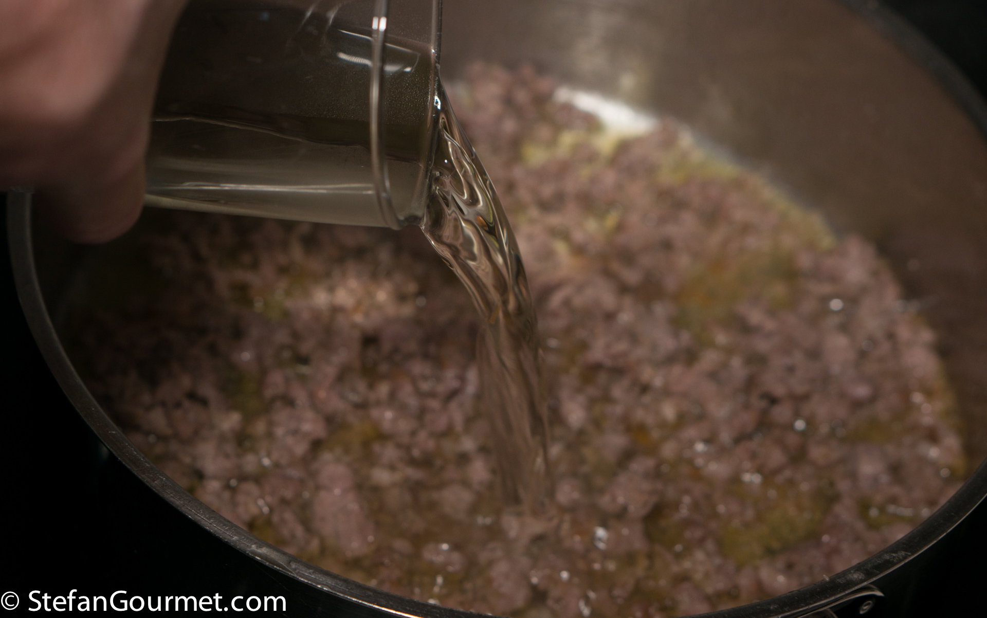 Deglaze with the white wine.