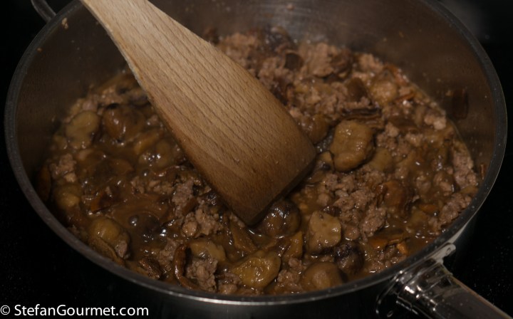 Chop the mushrooms and add to the sausage.