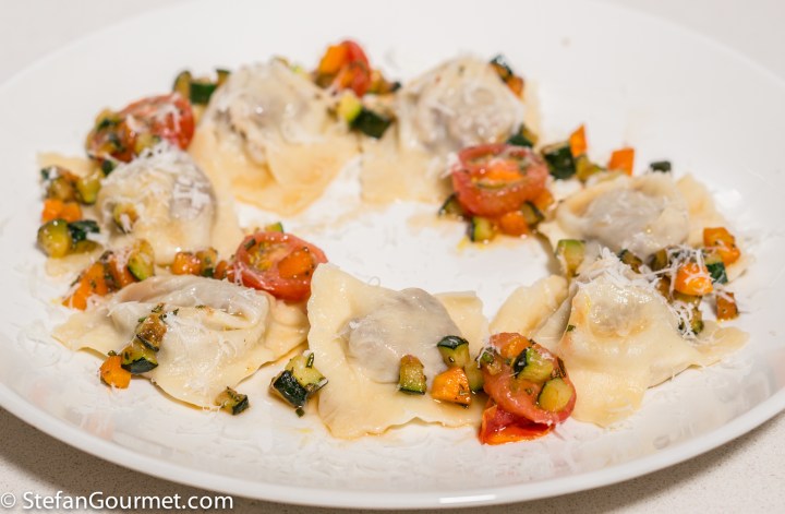 Lamb ravioli with crunchy vegetables is an appropriate flashback for today’s post, because it is also a dish that I first enjoyed in Sardinia.