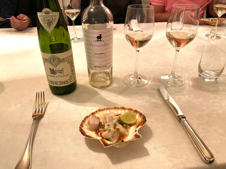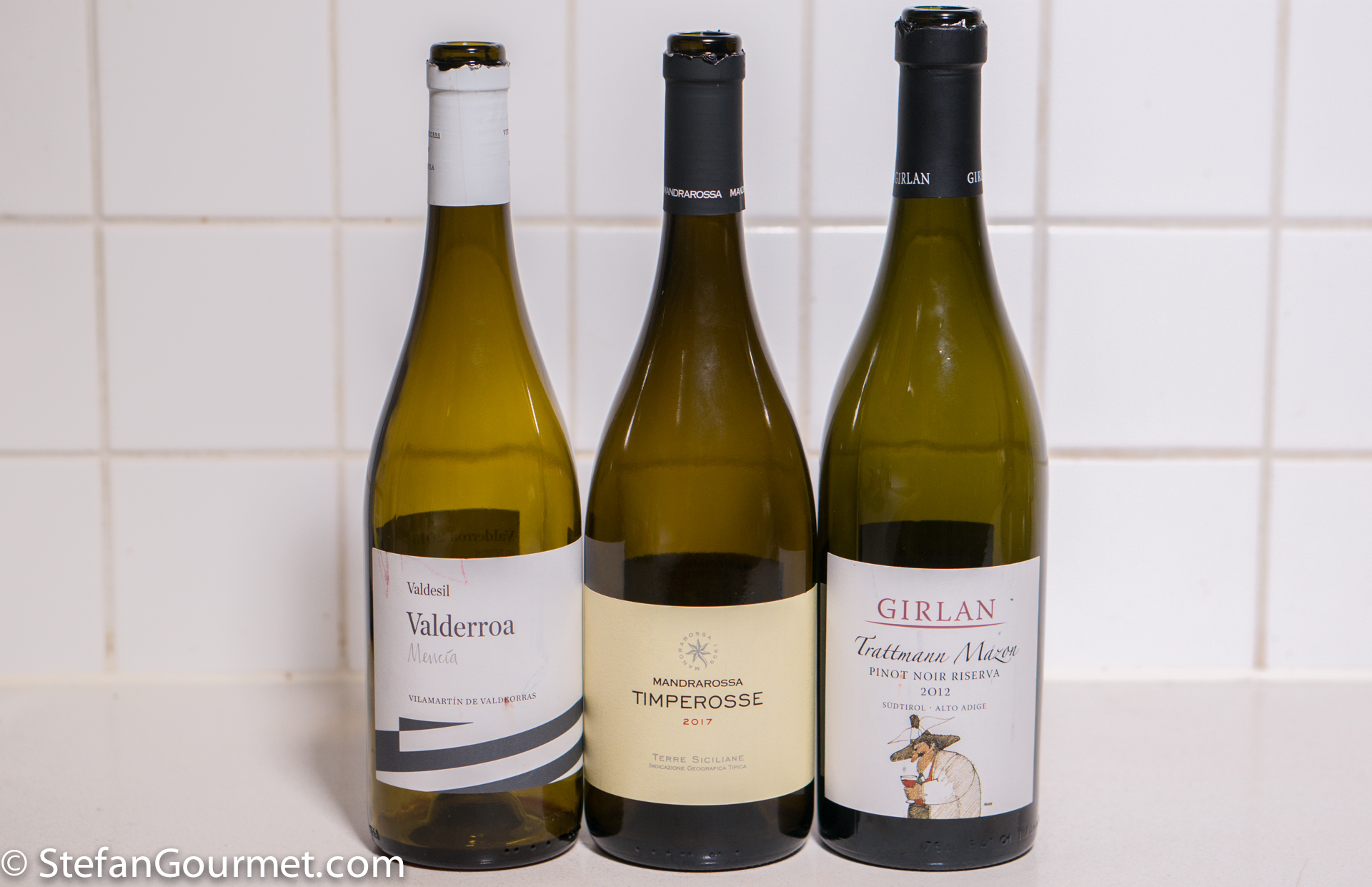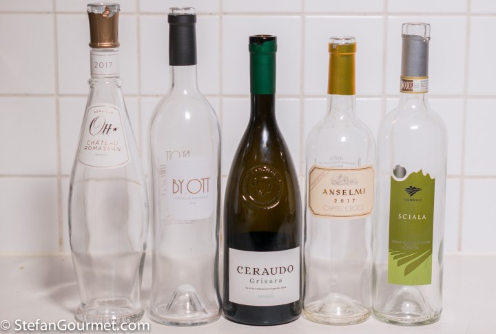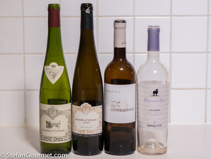 These are the wines I served with the ceviche: three different Albariños from Rias Baixas in Spain, and every time the same Pecorello from Calabria in Italy: