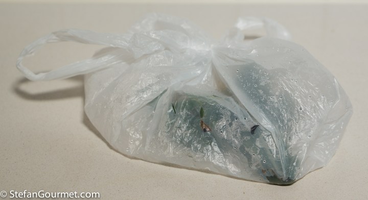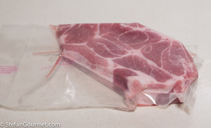 Chile en Nogada was created in 1821 by the Pueblan Nuns as a festive food to honor a visit from revolutionary general Don Augustín de Iturbide. Mexico had just won its independence from Spain. The colors of the dish are the same as in the Mexican flag: green poblano pepper and parsley, white walnut sauce, and red pomegranate seeds. It is a roasted poblano pepper filled with a picadillo of pork with fruits and nuts. I already wanted to make it when I saw it on Richard’s blog more than six years ago, but back then I could not get fresh poblano peppers. Now that I can get them I jumped at Elia’s suggestion to include this in the Mexican dinner. It is an unusual but delicious dish. There are many variations, but I stayed very close to Richard’s version. Poblano peppers can be almost as mild as green bell peppers, but they can also be quite spicy. If you can’t get poblano peppers and/or don’t like spicy food, you could substitute with green bell peppers. I cooked the pork sous-vide; for the traditional approach check out Richard’s recipe.