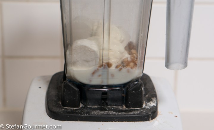 Toast the walnuts and almonds in the oven for 10 minutes at 180C/350F.