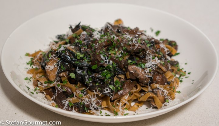 Pasta is sometimes cooked in the way of risotto in Italian cooking, which means that it is cooked (or finished to be cooked) in stock. The pasta will take on the flavor of the stock, so this will give your pasta dish great depth of flavor. This works exceptionally well for pasta with dried porcini mushrooms, as you can use the porcini soaking liquid to finish cooking the pasta. Combined with the reconstituted porcini mushrooms, fresh mushrooms, and parmigiano, this makes for one hell of a flavor bomb from all that umami. Click here for the recipe!