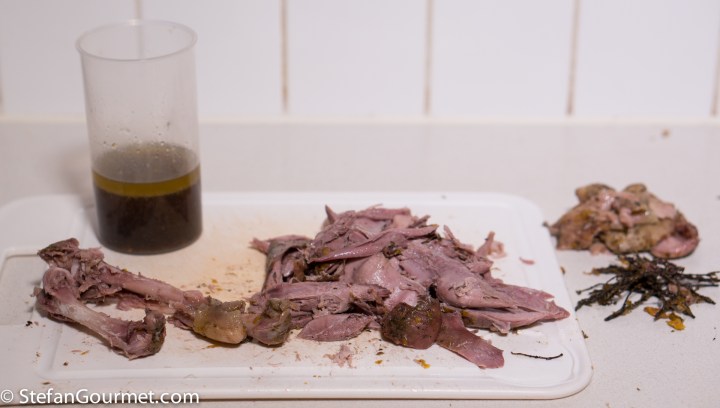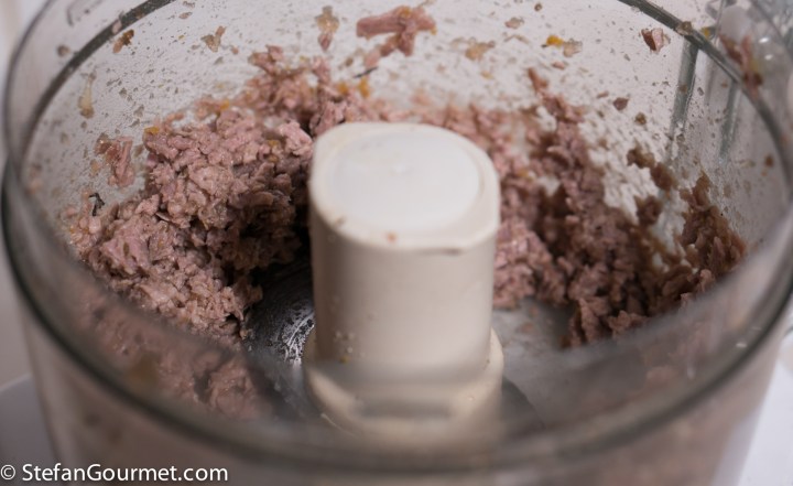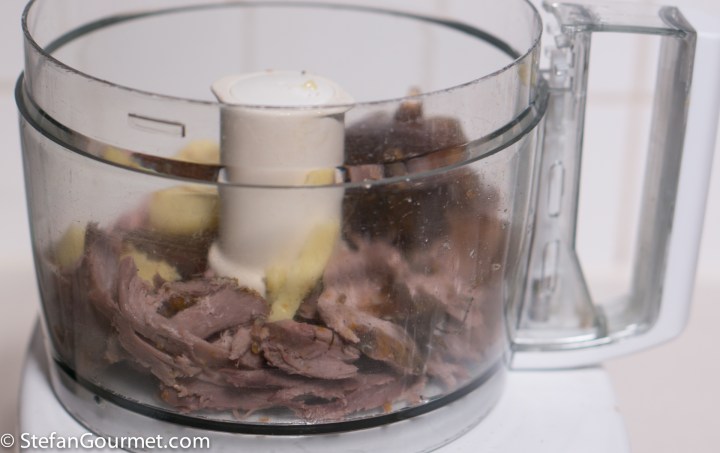 Put the duck meat in a food processor together with the jellied juices from cooking the duck.
