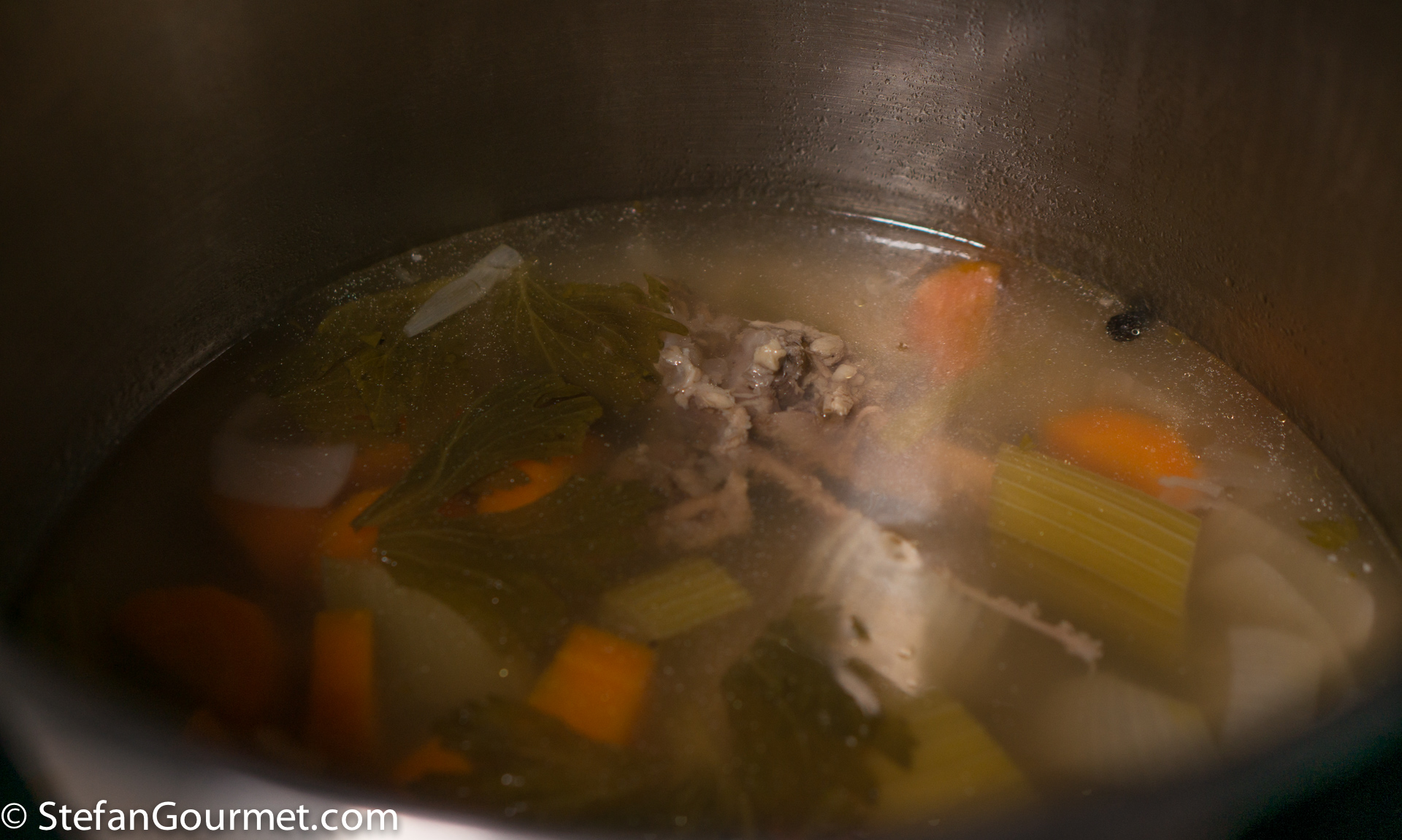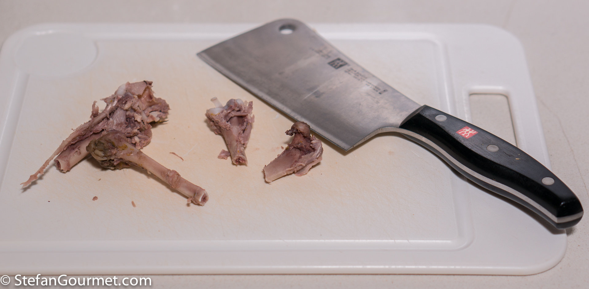 Use a cleaver to crack the bones, so the flavor that is inside will end up in the stock.
