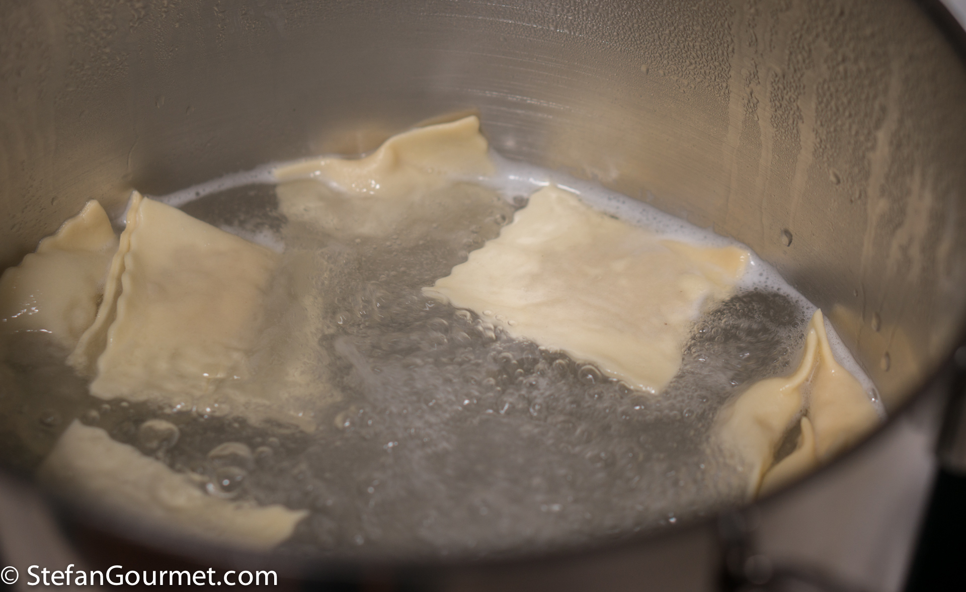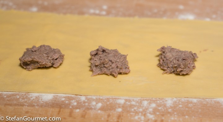 Make fresh pasta dough according to my instructions, allow it to rest for an hour, and then make ravioli according to my instructions.