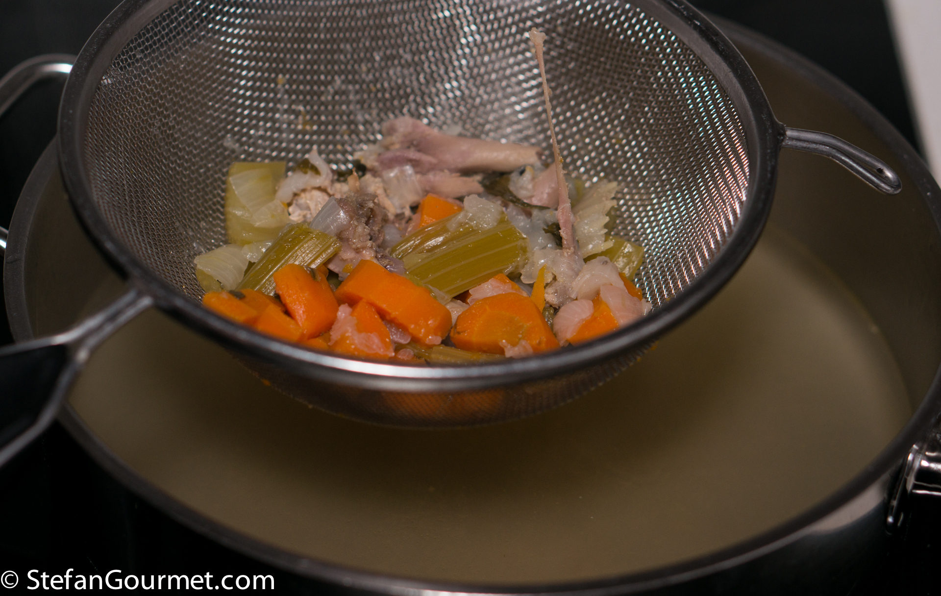 Sieve the stock and discard the solids.