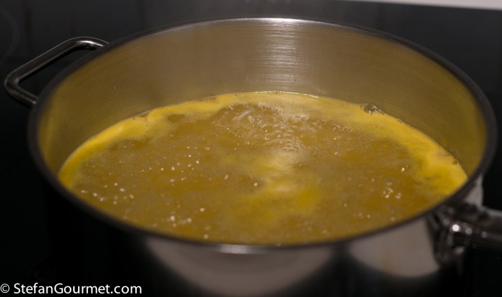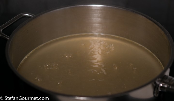 Bring the duck stock to a boil.