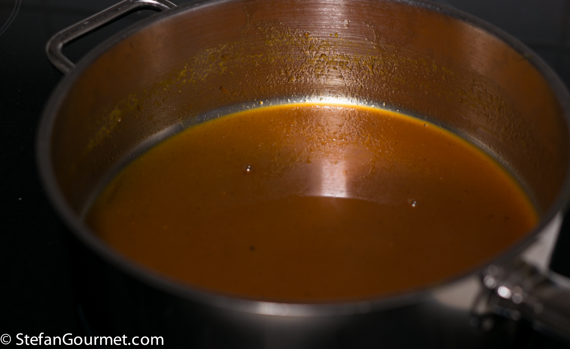 …and reduce until it is almost syrupy. Season the orange sauce with salt, freshly ground black pepper, and honey. It depends on the sweetness of the oranges if any honey is needed at all. With the oranges I used, about 1 teaspoon of honey was needed to balance out the acidity and bitterness of the oranges.