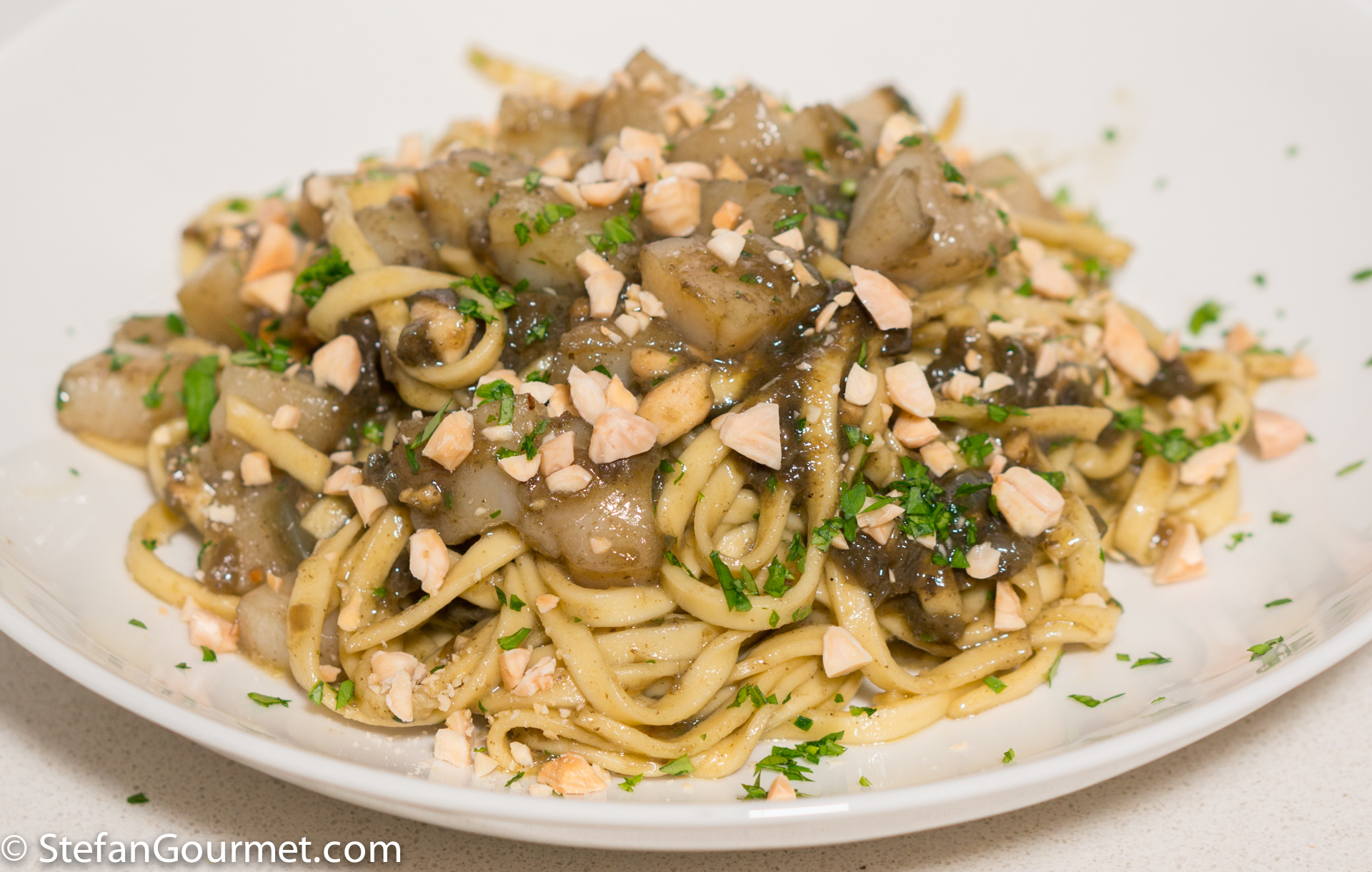 Fresh pasta with scallops, shallots, and almonds is a great pasta dish that uses surprisingly few ingredients to deliver such great depth of flavor.