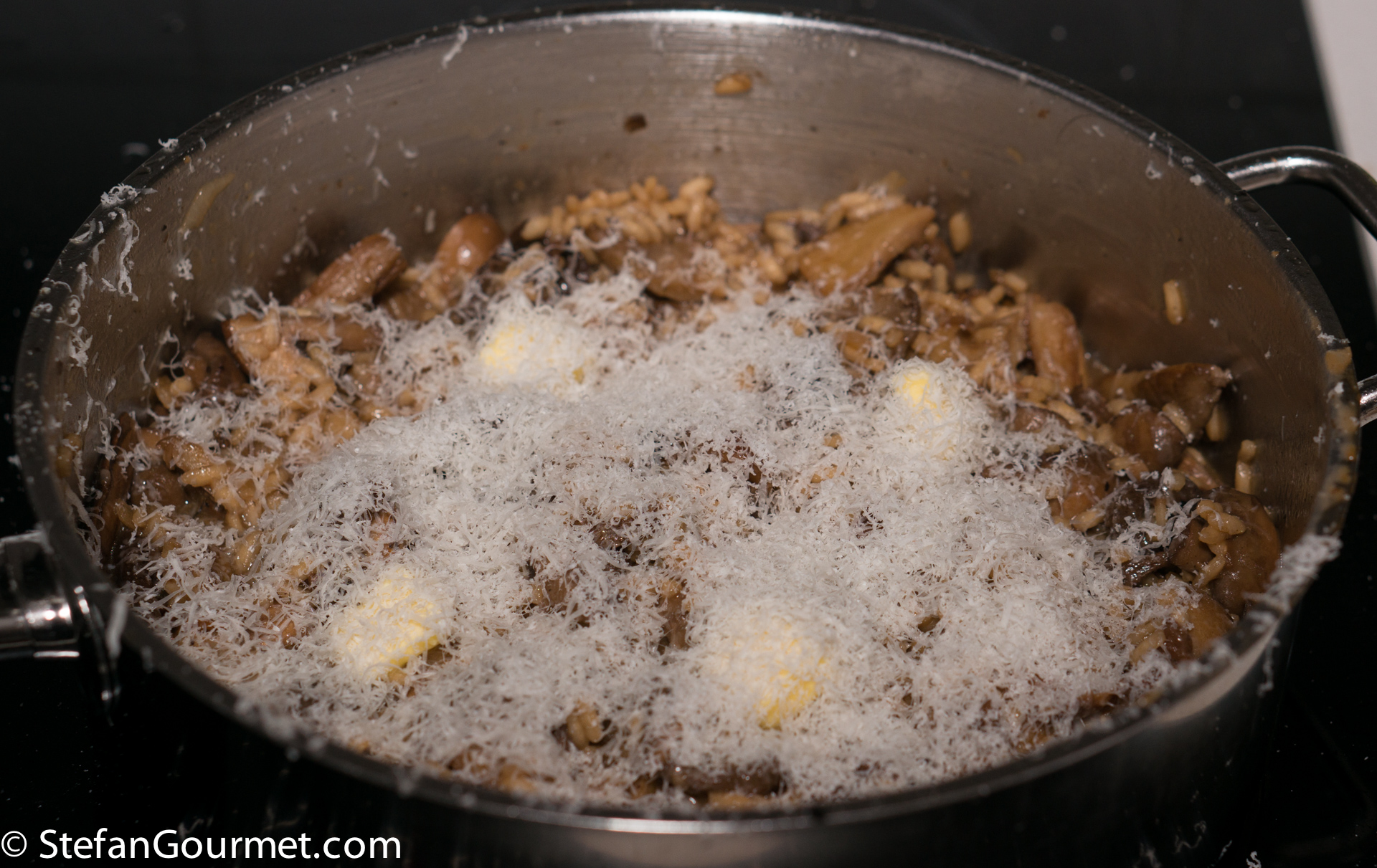 Add freshly grated parmigiano (about a handful) and a tablespoon of butter in small pieces.