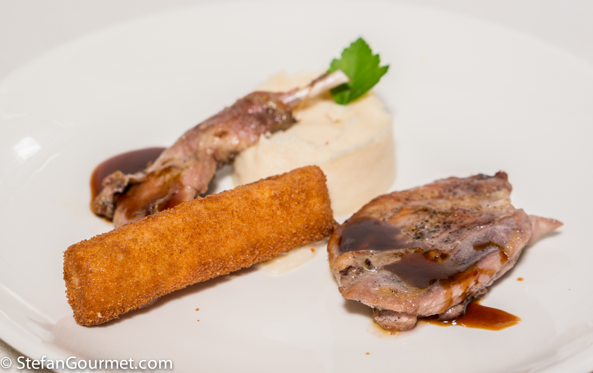 Partridge Sous-Vide with Its Own Jus, Deep Fried Salsify, and Parsley Root Puree