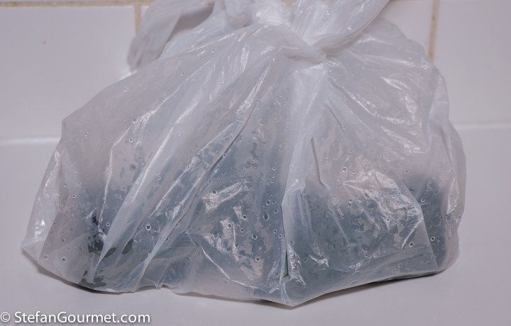Then I put the peppers in a plastic bag to soften the skin some more while the peppers were cooling.