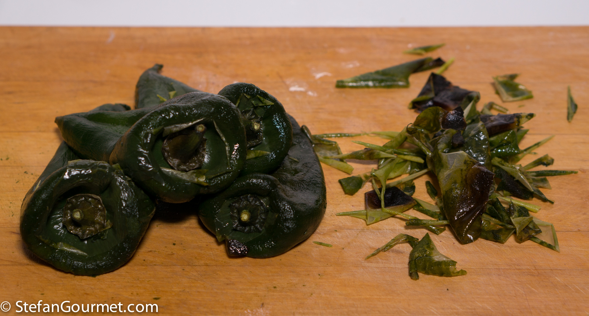 Peel the peppers. It is not a big deal if a bit of skin doesn’t come off.